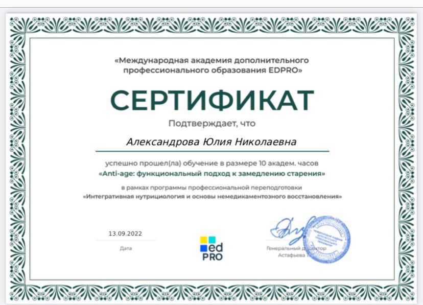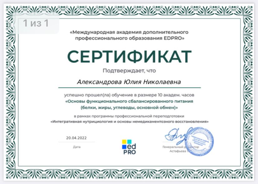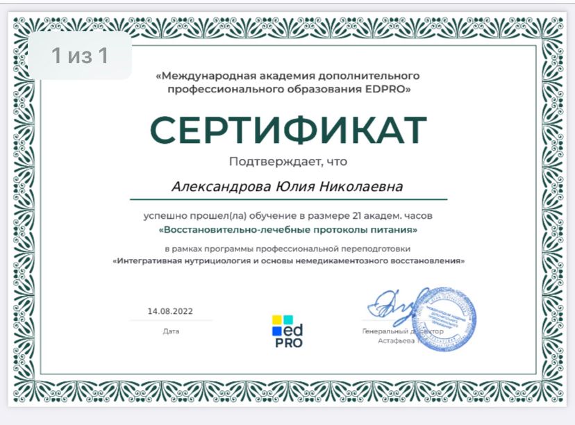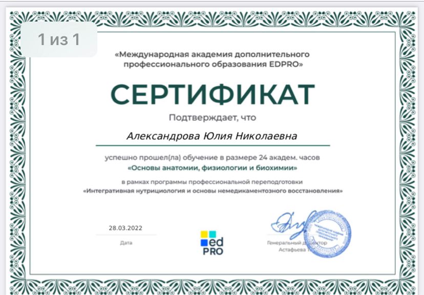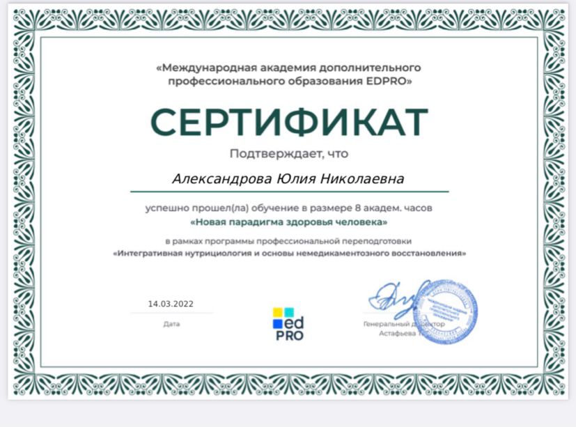 Специалист по правильному питанию, здоровому образу жизни и немедикаментозному восстановлению организма. Член международной ассоциации Нутрициологов и коучей по здоровью Я глубоко уверена, что сбалансированное питание – основа здоровья! Помните, здоровье, красота и долголетие начинаются на Вашей тарелке! Если Вы у стали бегать по кругу сами, или с детьми- Вам точно ко мне! Я объясню Вам простые истины простыми словами!